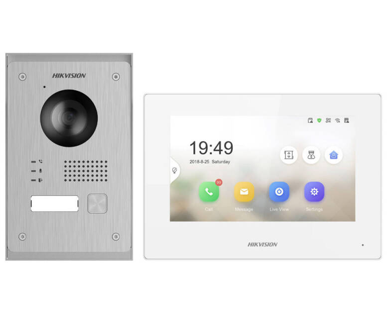 - Panel zewnętrzny z kamerą, mikrofonem, głośnikiem i przyciskiem dzwonka